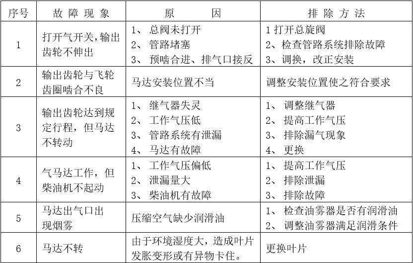 将马达安装在柴油机上时,其安装位置应满足:其输出齿轮与柴油机飞轮齿圈端面距离保证在3-5mm,齿侧间隙控制在0.7-1.1mm。