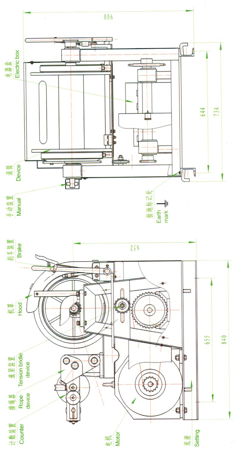 DCJ电动测井绞车,主要适用于石油钻井(直并、定向井、丛式井)的测量过程中.测量仪器的起吊和放送,从而实 现井的斜度、方位和井深的测量。该绞车采用丫CT电磁调速电动机为动力,通过链轮痢剌巴扭矩传给滚筒,配有调速控制 器控制滚筒的转速,具有调速范围广、调速精度高的特点:配有计数器部件,能够显示测量深度。比其他同类产品具有更 大的优越性,是油田测并的专用理想设备。