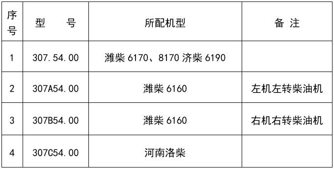 用户在选型订购时,须参照下表,标明所需电动预供油泵的具体型号,单位为台。